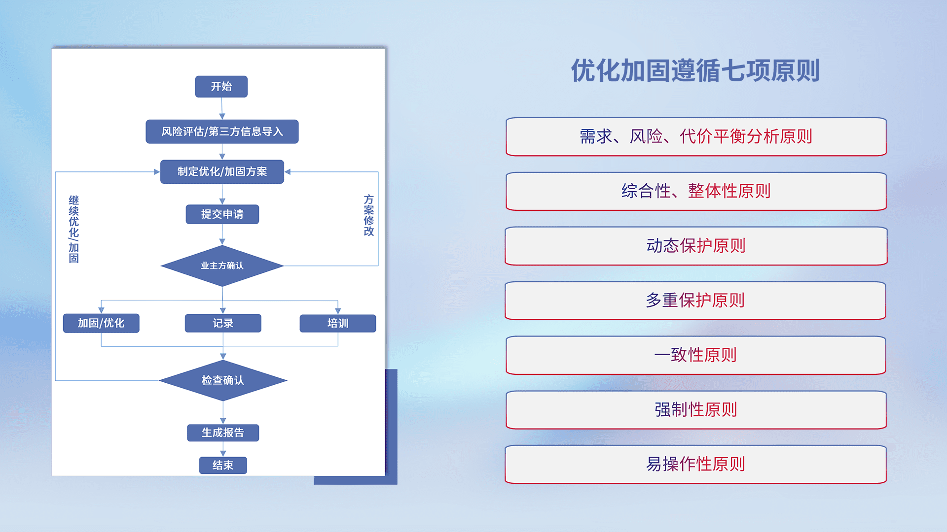 最大程度利用现有资产,,,对评估发现的问题进行封堵与整改,,,,防止漏洞被利用,,,,提升整体网络安全性,,,,为客户带来高标准的优化加固服务。。。
